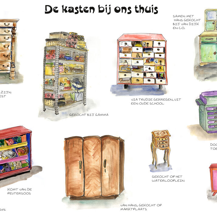 Ook je interieur verbeeld? Als poster (A3) aan de muur? Als leuke herinnering? Een serie kasten, vazen, potten, kinderspeelgoed? Of…